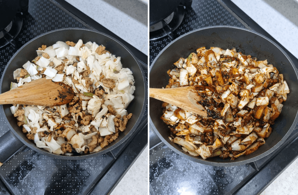 저는 이때 설탕 한 스푼, 그리고 굴소스도 넣으려 했는데, 굴소스가 쥐똥만큼 남아있더라구요 ㅠ