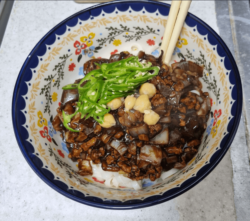 (짜장 소스를 밥이 아닌 면과 먹으려면 간을 약간 더 세게 잡아주시는 게 좋습니다.)