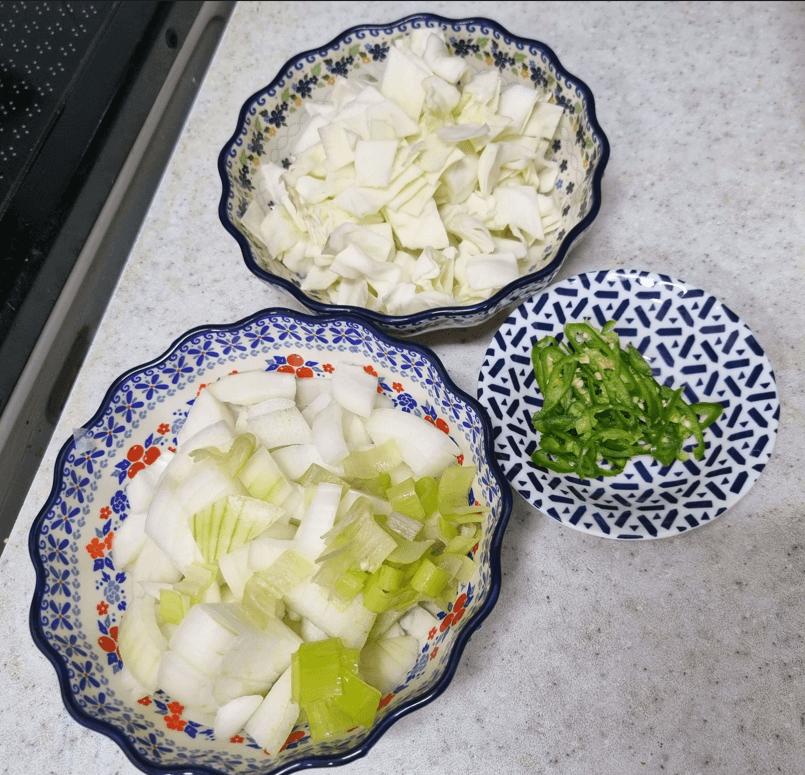 대파는 맛이 가서 최대한 괜찮은 부분만 썰었는데도, 사진으로 보니 색이 우중충하네요.