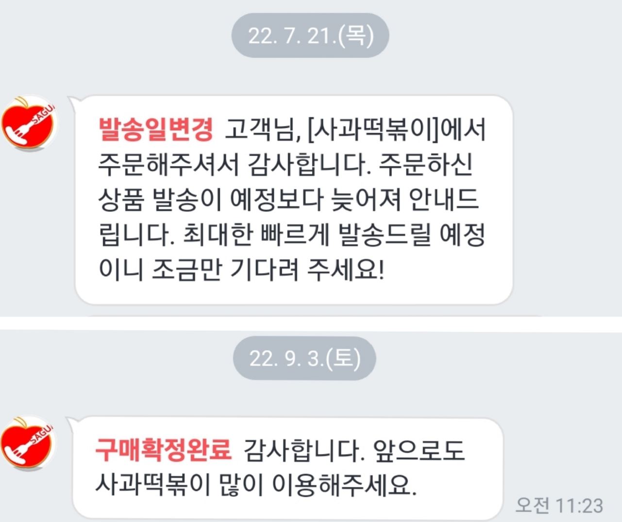 사과떡볶이는 배송일이 긴 걸로 유명합니다.