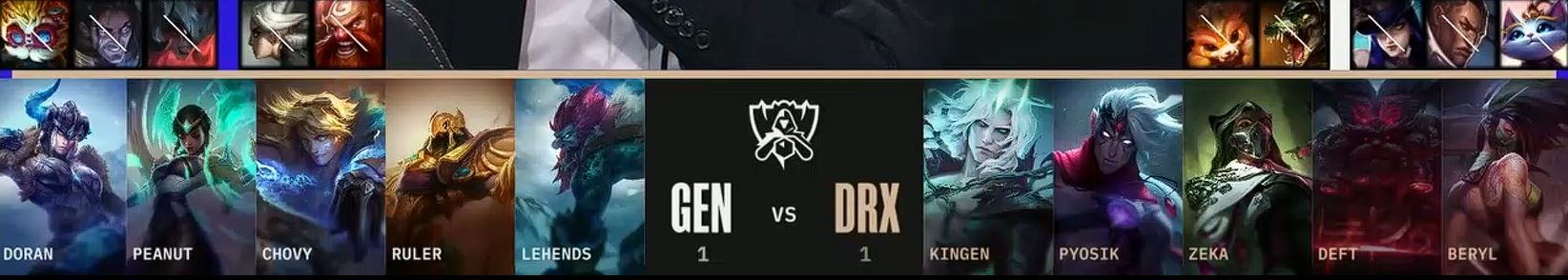 초반은 DRX에게 유리하게 흘러갔지만, 용 둥지 앞 싸움에서 젠지가 크게 득점하며 젠지에게 흐름이 돌아갔습니다.